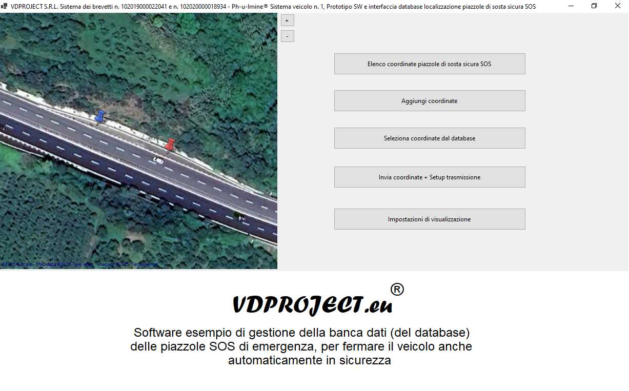 Il sistema suddetto include una banca dati contenente le coordinate e i dati di localizzazione dei punti di sosta SOS e di altri punti di sosta sicura, da comunicare al veicolo quantomeno. La banca dati dovrebbe svolgere come ruolo primario l'aggiornamento dei dati già presenti nel sistema, quindi a bordo, ma può essere liberamente e pubblicamente utilizzata per acquisire e visualizzare le coordinate dei punti di sosta SOS.