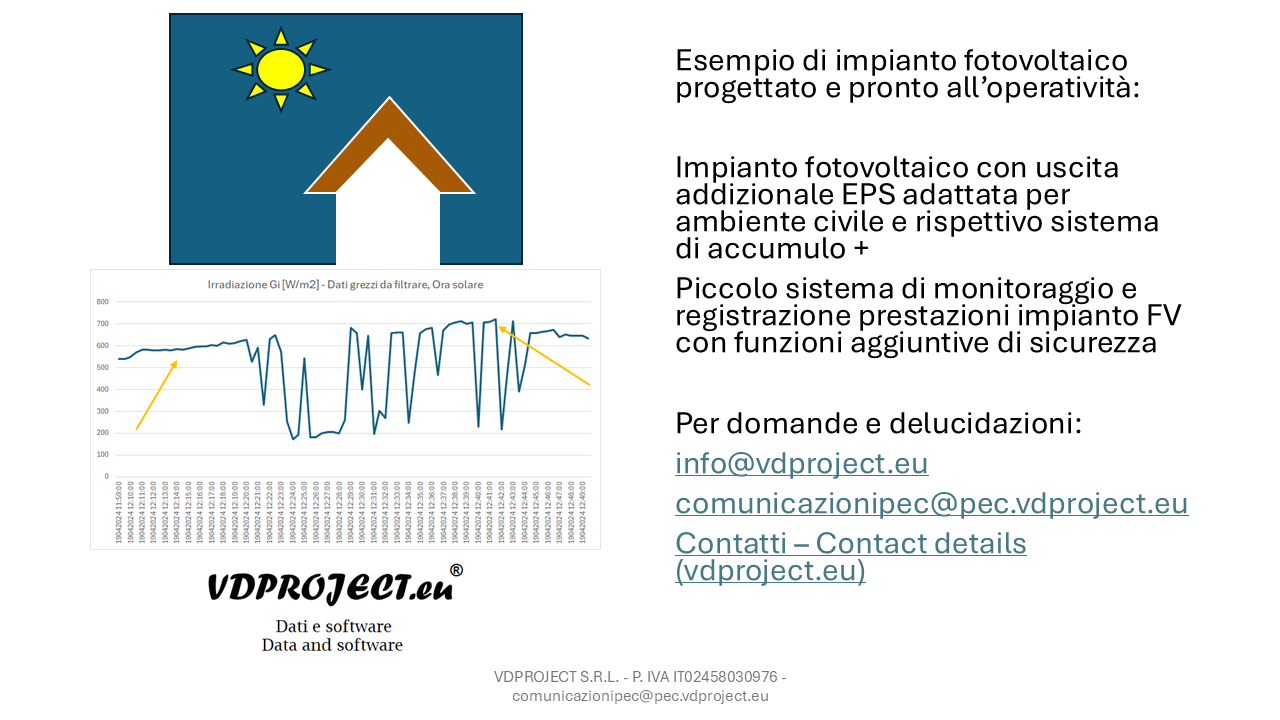 *** L'irradianza misurata è la POA = Plane-Of-Array irradiance = Irradianza sul piano, cioè sul piano di una stringa di pannelli fotovoltaici, indicata con il simbolo Gi